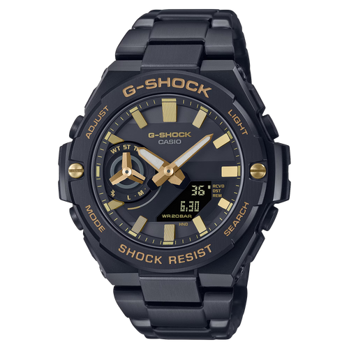 Striking a balance between durability and elegance, the G-Carbon X-Slim Limited Edition showcases a refined black and gold colorway within a slim stainless steel build. The watch incorporates a Carbon Core Guard structure for enhanced shock resistance in a streamlined form. Solar-powered movement, Bluetooth connectivity, and dual LED lighting provide a versatile and tech-forward experience. Whether worn for formal settings or rugged environments, it delivers standout utility without compromising style.