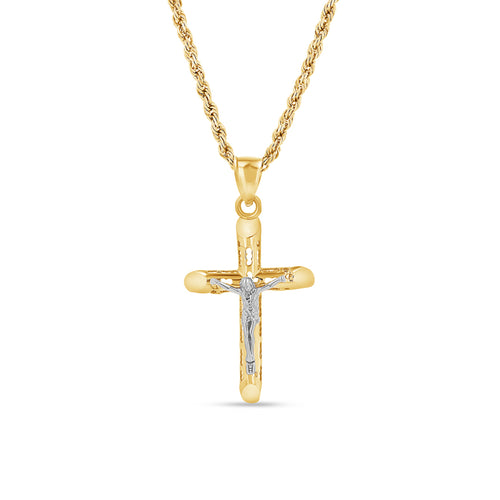 Two-tone crucifix design with white gold figure
