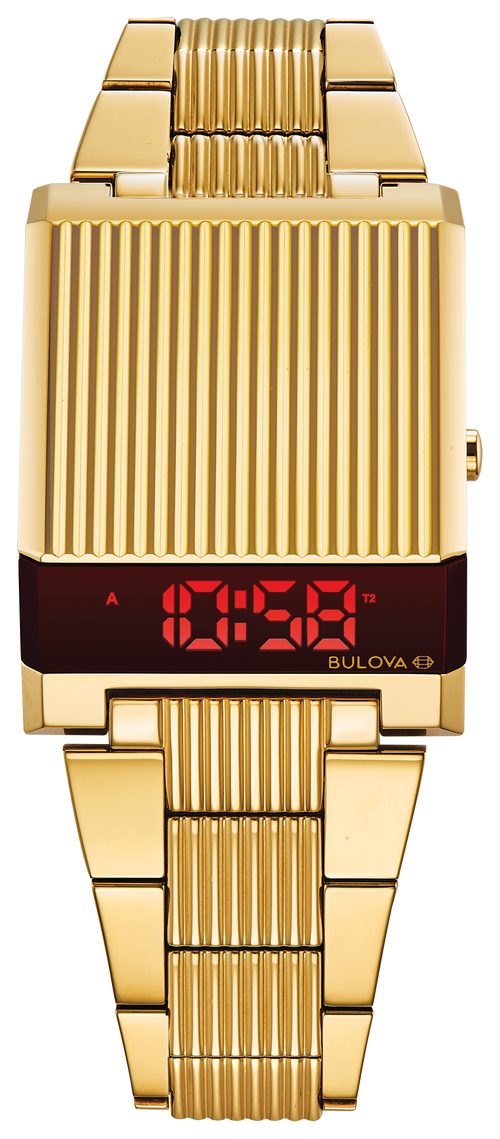 Redescubre la innovación vintage con un toque moderno y audaz. El Bulova Computron realza el estilo de los años 70 con una exclusiva caja trapezoidal en tono dorado y una pantalla LED roja brillante. Su pantalla lateral permite consultar la hora de forma rápida y discreta, ideal para profesionales en movimiento o coleccionistas que buscan algo diferente. Repleto de comodidad para el día a día, este reloj cuenta con doble huso horario, visualización de día y fecha, y opciones de visualización de 12 o 24 horas. El brazalete de acero inoxidable garantiza un ajuste cómodo y seguro, mientras que el resistente cristal mineral aporta tranquilidad. Si buscas un reloj digital que llame la atención y te simplifique la vida, este diseño excepcional ofrece estilo con esencia.