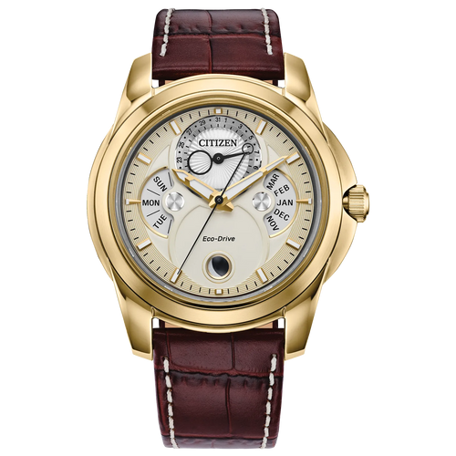 • Multi‐function dial showing moon phase, month, day, and date at a glance
