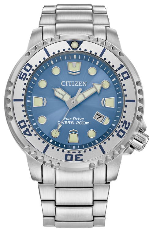 Sumérgete en la aventura con un reloj que combina una robusta funcionalidad con un diseño impactante. Una caja de acero inoxidable plateado de 44 mm alberga una esfera azul claro con textura de rayos de sol, con agujas e índices luminosos de gran tamaño para una mejor visibilidad bajo el agua. El bisel giratorio unidireccional, con detalles en plata, permite un registro preciso de los tiempos de inmersión. Un brazalete de acero inoxidable a juego garantiza comodidad y durabilidad durante las actividades acuáticas. Equipado con tecnología Eco-Drive, aprovecha la luz de cualquier fuente, eliminando la necesidad de cambiar la pila. Cumple con las normas ISO y es sumergible hasta 200 metros, diseñado para soportar los rigores de la exploración submarina.
