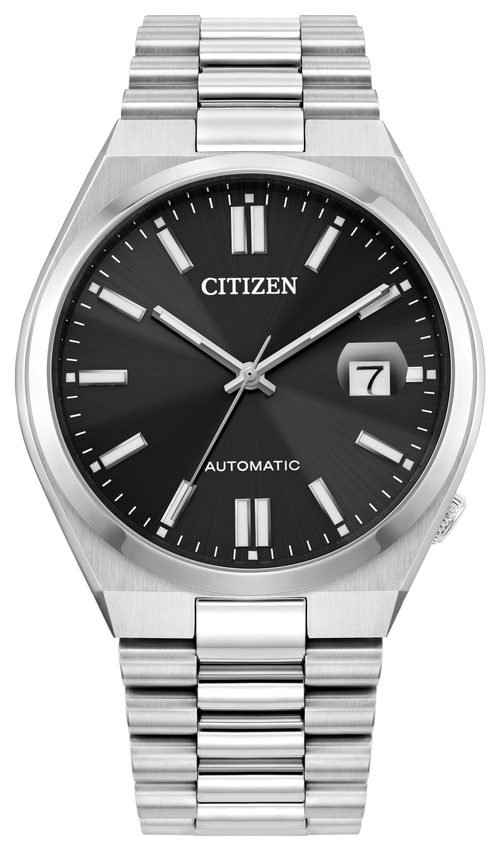 La esfera negra con efecto rayos de sol refleja la luz con sutil profundidad, rodeada de índices pulidos y agujas luminosas que facilitan la lectura. La ventana de fecha se encuentra a las 3 en punto, ampliada por una lente Cyclops integrada en el cristal de zafiro. La caja y el brazalete de acero inoxidable se combinan en un diseño suave e integrado que se lleva cómodamente y luce impecable con casi cualquier ocasión. En su interior, el movimiento automático Miyota ofrece una reserva de marcha de 45 horas y revela su rotor dorado a través de un fondo de caja transparente. La resistencia al agua protege contra las salpicaduras diarias, y el brazalete se cierra con un cierre triple que ofrece seguridad sin añadir volumen.
