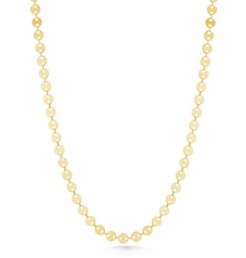 Si buscas una pieza que realce tu look al instante, la Cadena de Monedas Espejo de 3 mm en oro amarillo de 14 quilates es la indicada. La forma en que los discos pulidos captan la luz hace que esta cadena brille con cada movimiento. Es audaz pero sin exagerar, perfecta para un brunch, una salida nocturna o simplemente para lucir elegante entre semana. Es el tipo de cadena que usarás una y otra vez. Si estás lista para darte un capricho con un estilo sofisticado y natural, esta debe estar en tu colección.