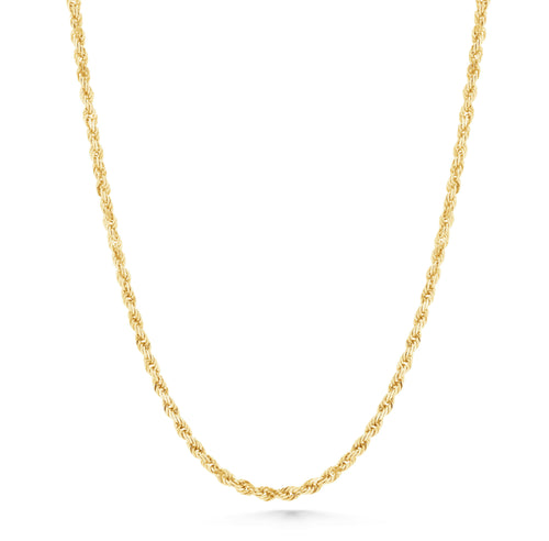 Esta cadena de cuerda de 3 mm en oro amarillo de 14 quilates es la pieza que se integra a la perfección en tu día a día. Su brillo sutil y diseño clásico la convierten en un accesorio indispensable, tanto para ir a la oficina como para salir de fiesta. Es una prenda esencial que aporta un toque de elegancia sin sobrecargar tu look. Si buscas una cadena elegante y resistente, esta es una opción ideal.
