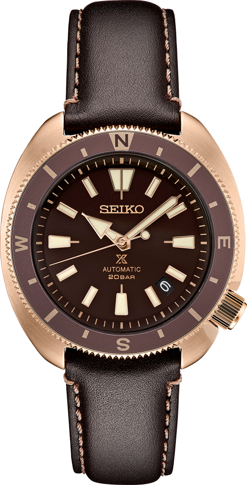 El Seiko Prospex SRPG18, parte de la serie "Land Tortoise", combina una robusta funcionalidad con una estética refinada. Su caja de acero inoxidable en tono oro rosa y su esfera marrón ofrecen un aspecto distintivo, mientras que el bisel con brújula añade una utilidad práctica para los aventureros.