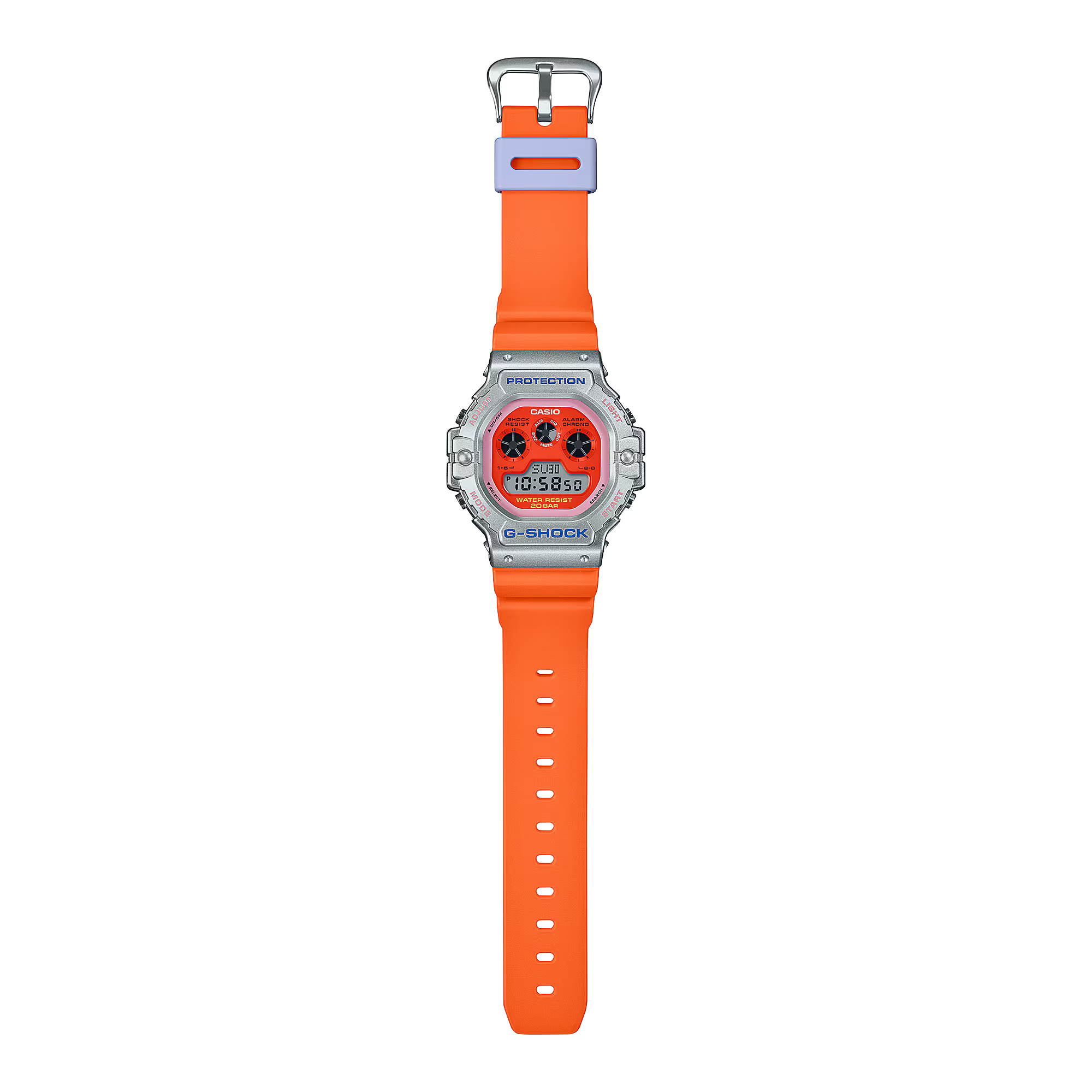 Add attitude to your wrist with this G-Shock, a bold mix of color, toughness, and retro digital style. The metallic silver bezel catches the light while vibrant color accents give it strong streetwear appeal. Built to take a beating, it features G-Shock’s signature shock resistance and 200 meter water protection, ready for gym sessions, late nights, and everything in between. A bright LED backlight, world time, stopwatch, and multiple alarms keep you on track with confidence and flair.